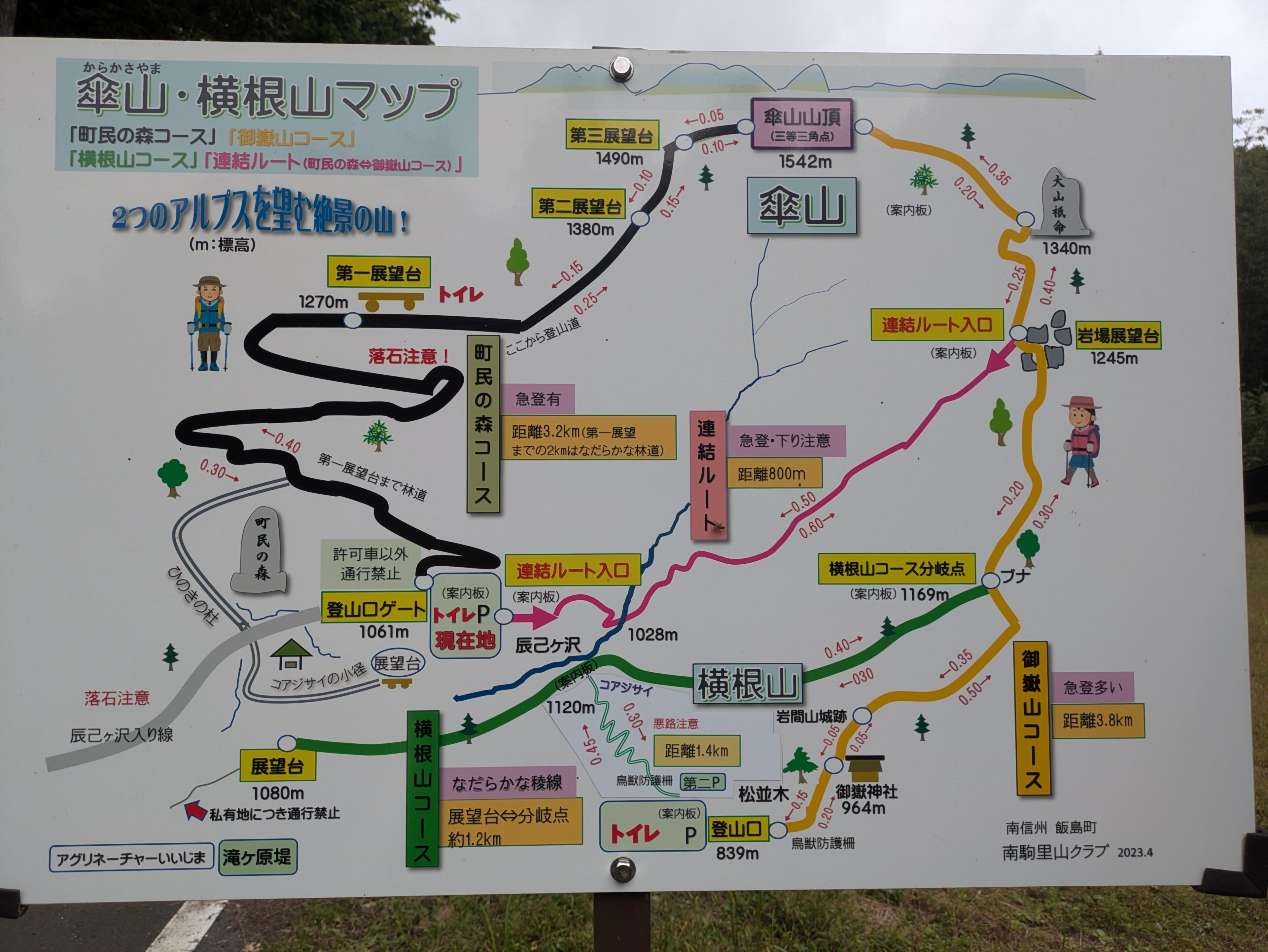 駐車場から新しくできた「連結ルート」を登り、ぐるっと左回りに周回するつもりで出発。