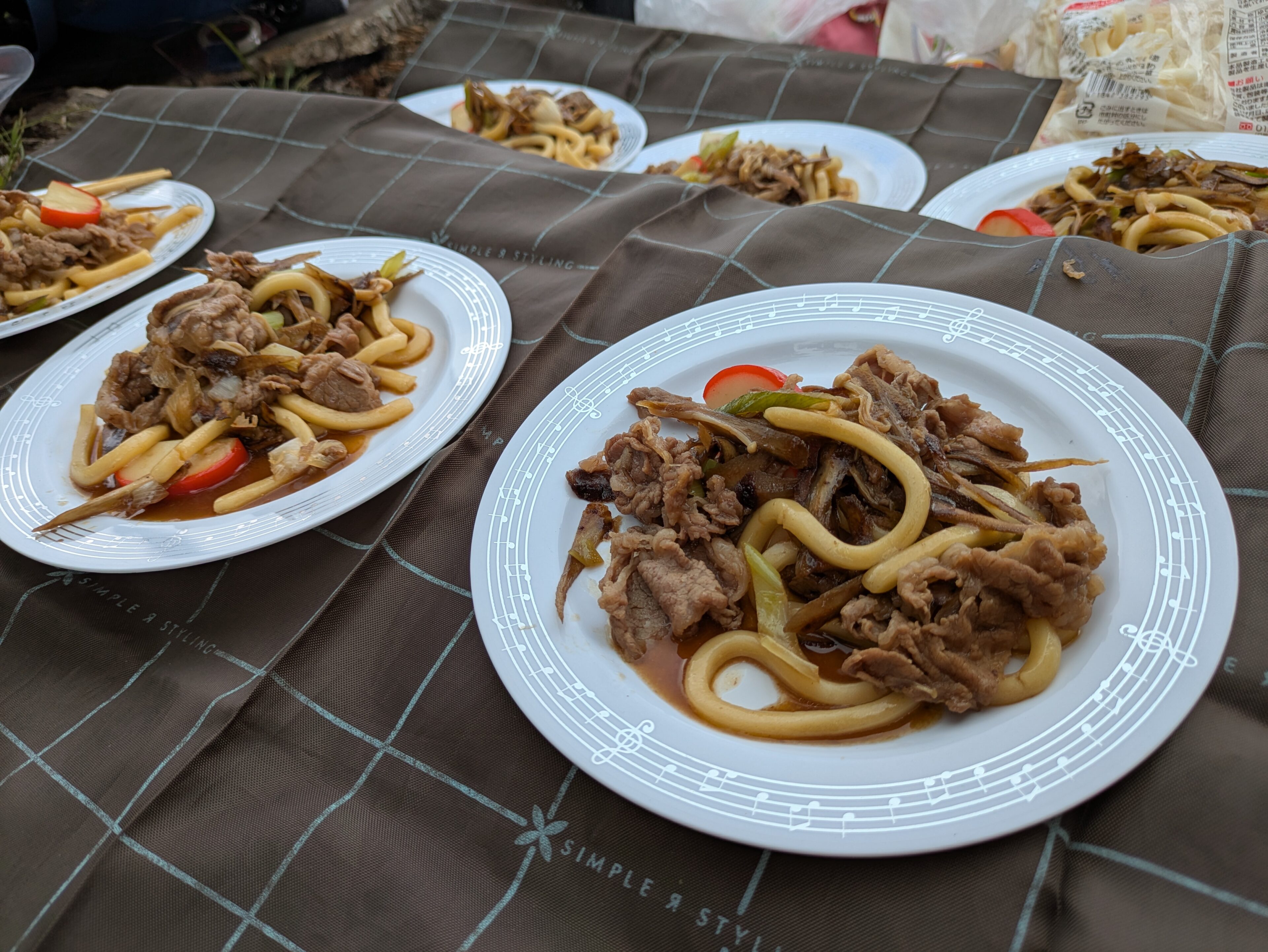 今度は無事に山頂にたどり着き、みんなで黒毛和牛たっぷりのすき焼きうどんを作っていただきました。